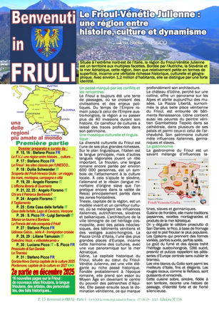 Dans l’espace rédactionnel limité par les contraintes budgétaires, la densité d’informations récoltées pour le dossier Friuli-Venezia Giulia ne nous a pas permis de diffuser l’ensemble des rubriques habituelles. Cependant la vie culturelle italienne en France a continué d’intéresser le public dans tous les domaines : cinéma, littérature, innovations, sport, loisirs, rencontres commémoratives ou festives etc. Vous retrouverez toutes nos rubriques traditionnelles dans l’édition 140 qui paraîtra au cours du premier trimestre 2026.